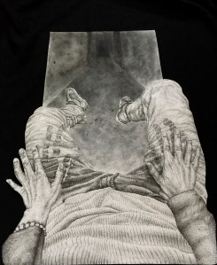 My favorite art piece that is in our Fall Online Edition is El Sueno Produce Monstruos by Sam Pabon. I felt the strong emotion in this art piece the first time I saw it, despite the lack in color, which is what makes the piece so connecting to me. There is depth in the height shown and the darkness show in contrast to that height I feel tells a lot of the art piece’s story. This piece is accessible because of the emotion and the perspective. The art piece was created to resemble first person point of view looking over an area from a high place. The perspective makes the art piece accessible because at least once in everyone’s life, we have looked at an area from a high perspective (i.e. a Ferris wheel, bridge, etc.) The emotion that comes in with that perspective is also accessible because the perspective feels as if we, the viewer, is observing from a high place. Many people have different reactions to having that sort of perspective.